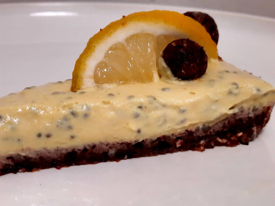 După ce s-a format o pastă fină, se adaugă semințele de chia și se amestecă cu o lingură. Se toarnă deasupra blatului din inelul de tort. Se dă la rece cel puțin 8 ore.
