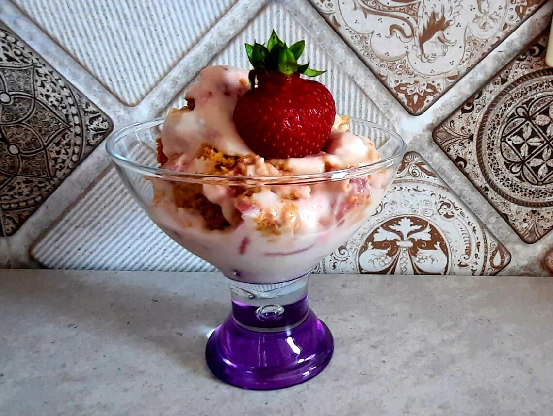 Se dă la rece cel puțin 8 ore. Eu le-am servit în cupe decorate cu căpșuni (așa cum se vede în poza articolului).