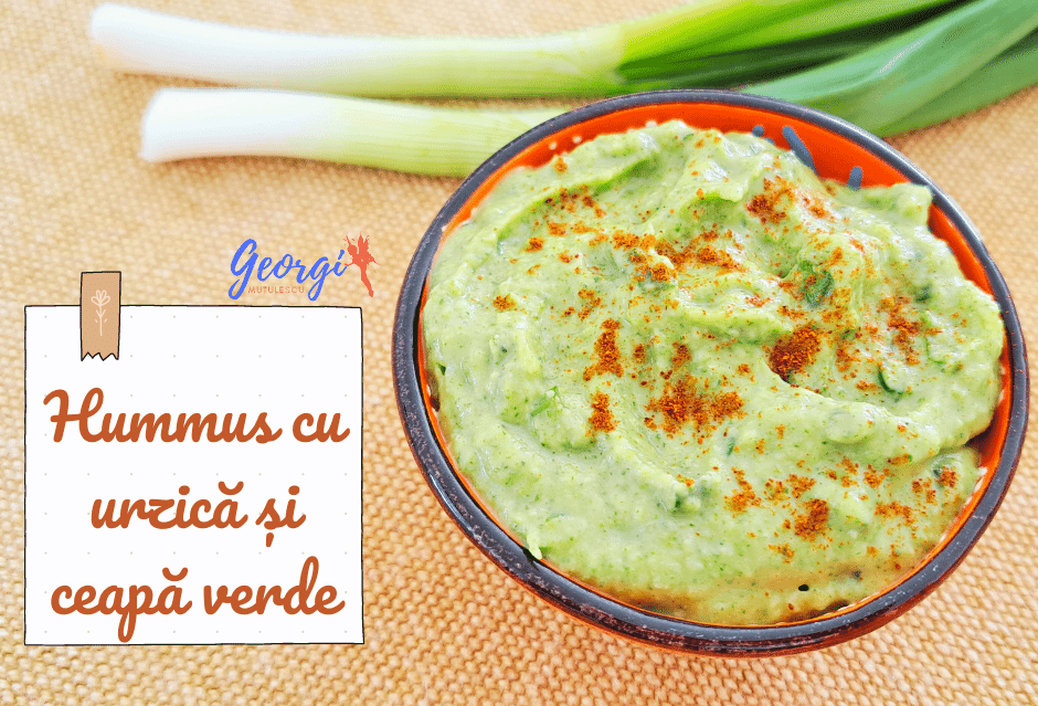 Separat, se toacă ceapa și se adaugă în hummus. Se amestecă bine și se dă la rece.